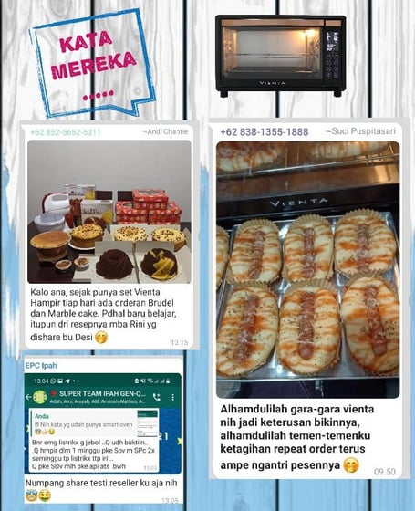 "Kalo ana, sejak punya Vienta Hampir tiap hari ada orderab Brudel dan Marblw Cake. Padahal baru belajar, itupun dari resepnya mba Rini yang di Share bu Desi.