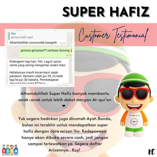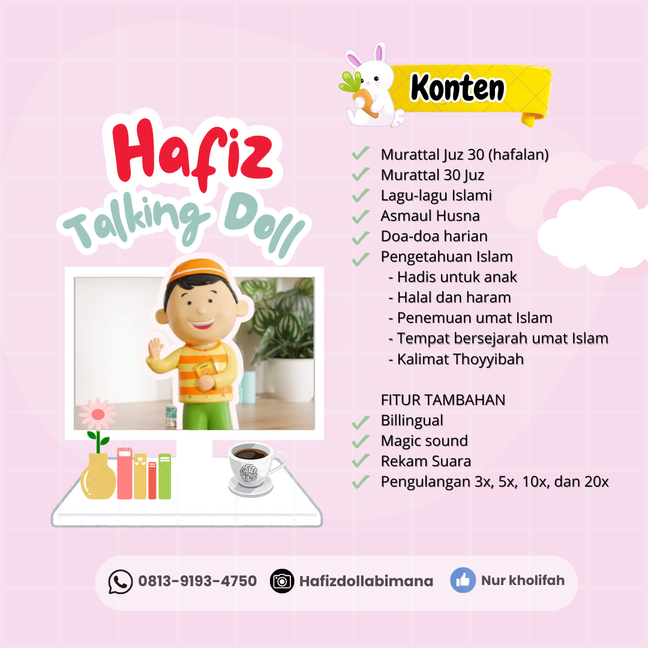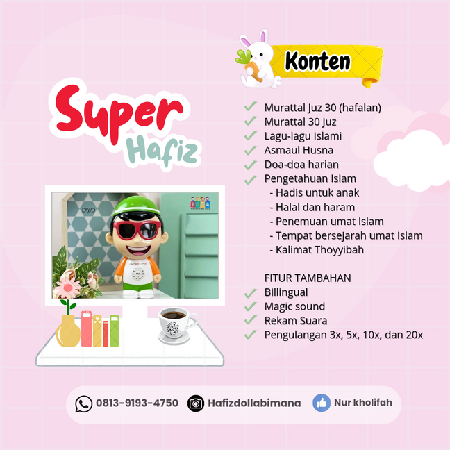 Super Hafiz qdalah boneka edukasi yang bisa di ajak belajar.