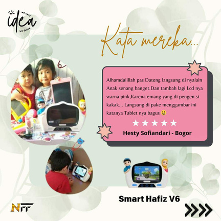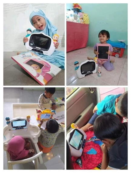 "Alhamdulillah pas dateng langsung dinyalain. Anak-anak senang Banget. Dab tambah lagi Lcd nya warna Pink, Karena emang yang dipengen si kakak...Langsung di pake menggambar ini katanya Tabletnya bagus 😄"- Hesty Sofiandari