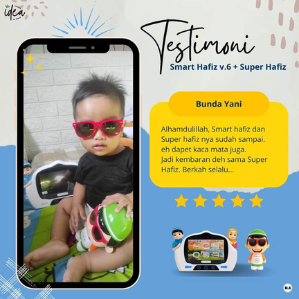 "Alhamdulillah, Smart hafiz dan Super Hafiznya sudah sampai. Eh dapet kacamata juga. Jadi kembaran deh sama Super Hafiz. Berkah selalu...