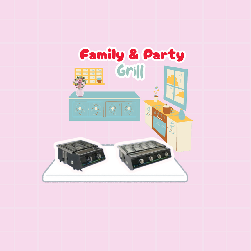 Family Grill 2 Tungku dan Party Grill 4 tungku. Tinggal pilih sesuai kebutuhan keluarga Anda.